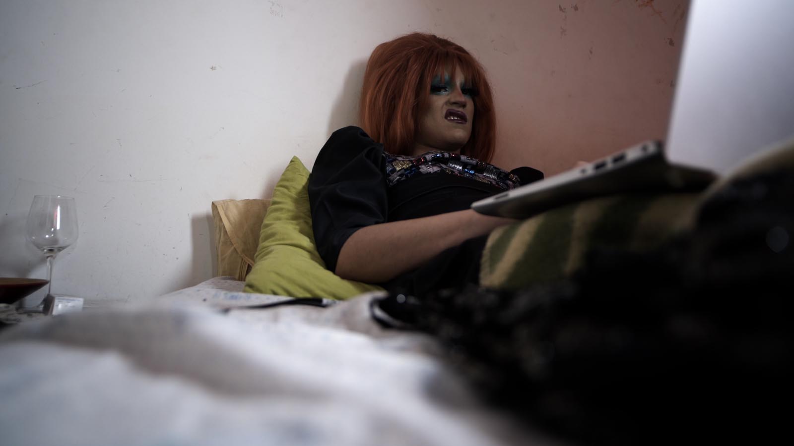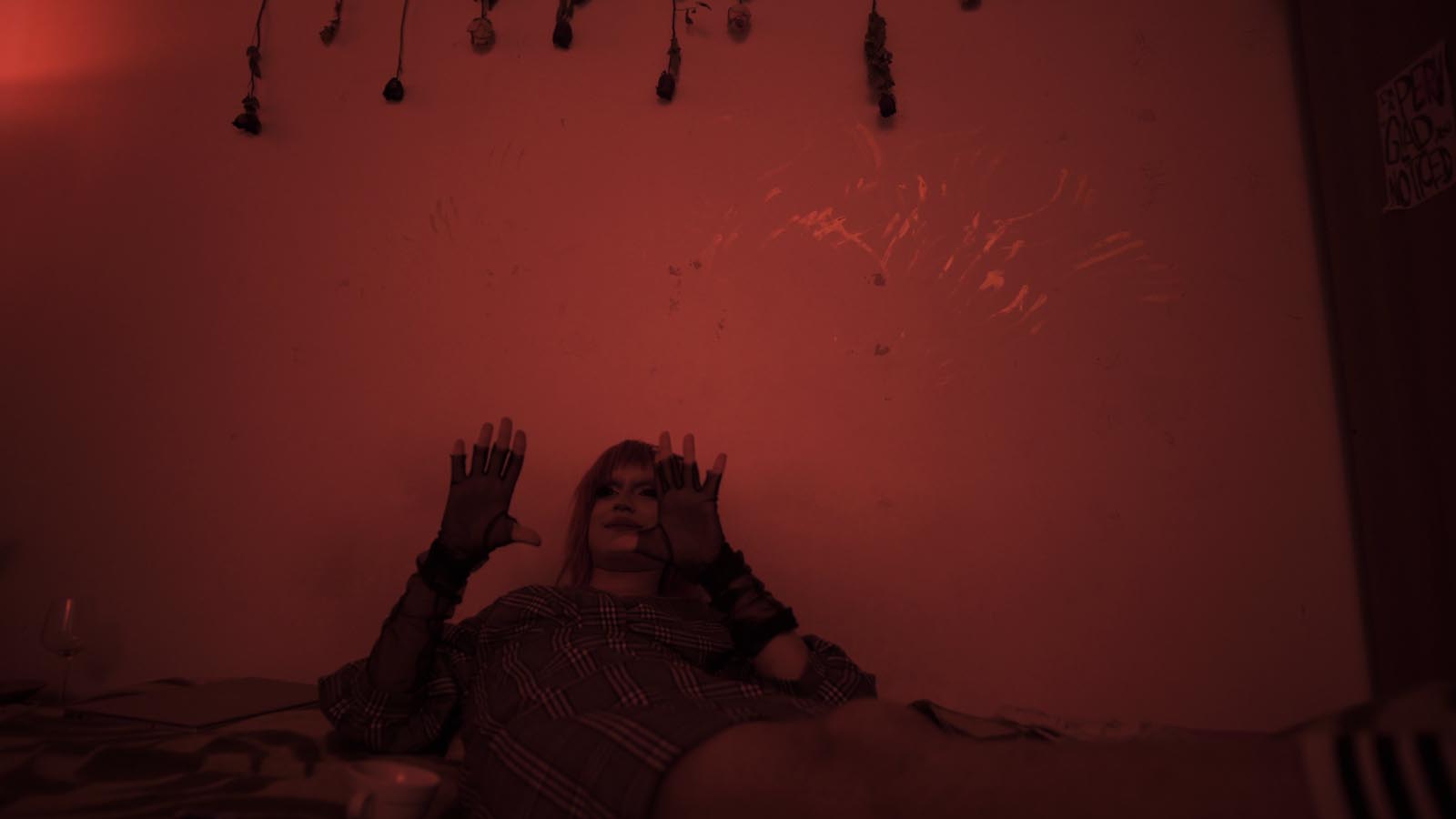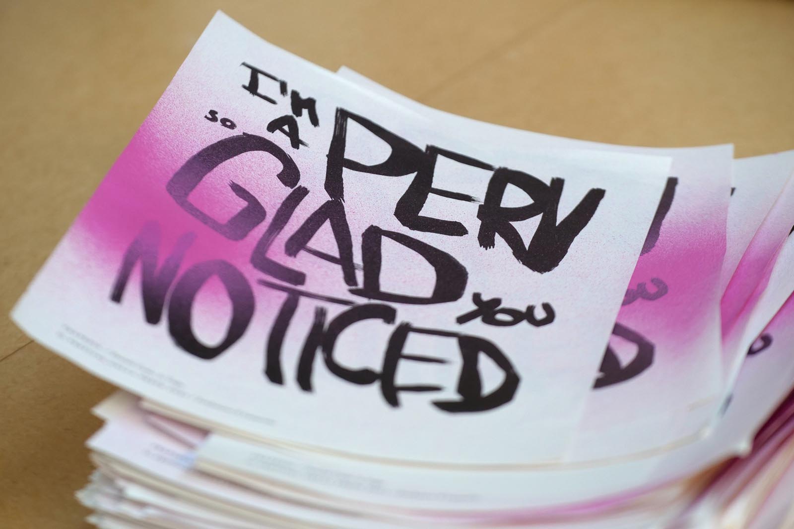 I’m a perv so glad you noticed è il flyer affisso sopra la testa del letto de La Trape. Un manifesto che è stato testimone di tutte le riprese di Trapezia. Un piccolo frammento del progetto video per raccontare della volontà di uscire dai confini immaginari, un invito a rimanere fluidi nei nostri corpi coinvolti.